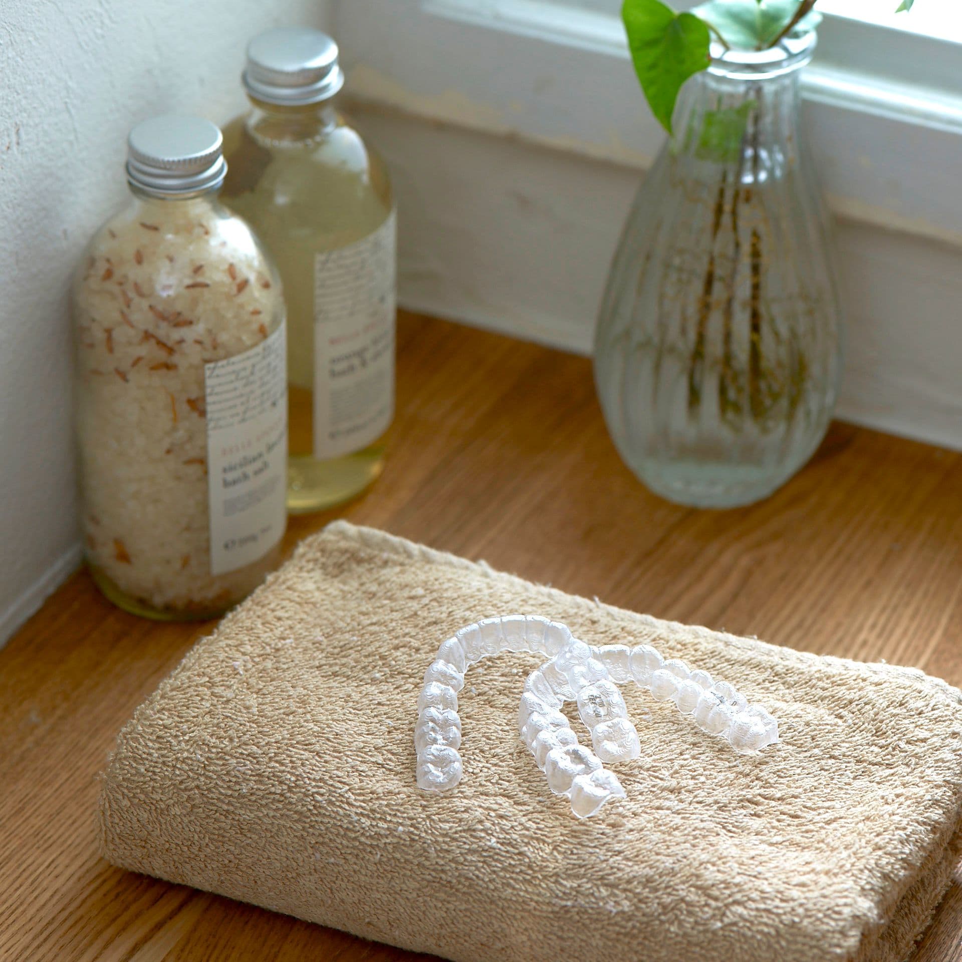 セルフケア時には取り外して、これまで通りのお手入れを。フロスも通せますのでしっかりケアができ、マウスピースも洗浄できるので衛生的。